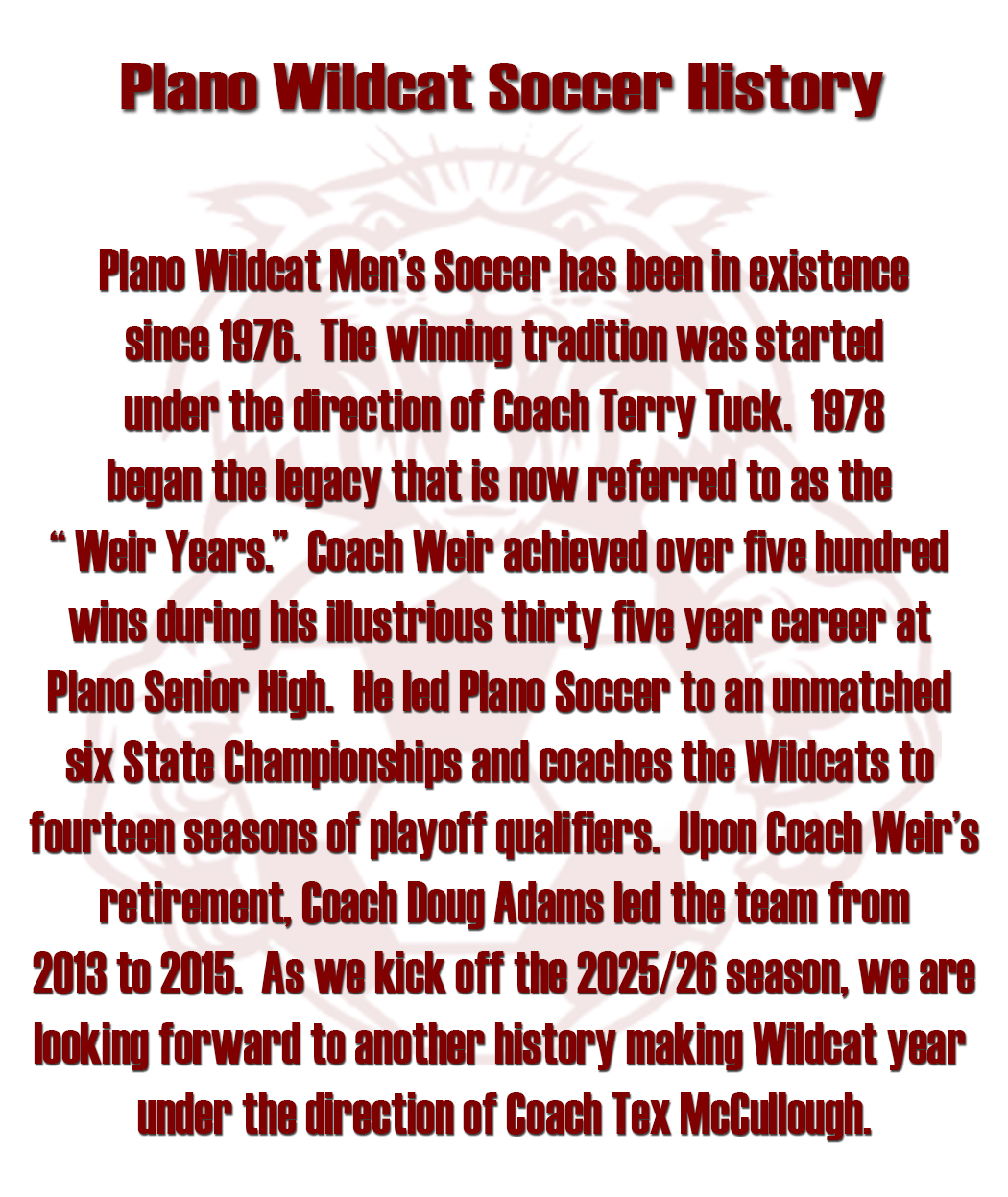 © Copyright 2025 | All Rights Reserved - Plano Wildcat Soccer Booster Club | P.O. Box 261617 - Plano, Texas | Boosters Email: planoboyssoccer@gmail.com